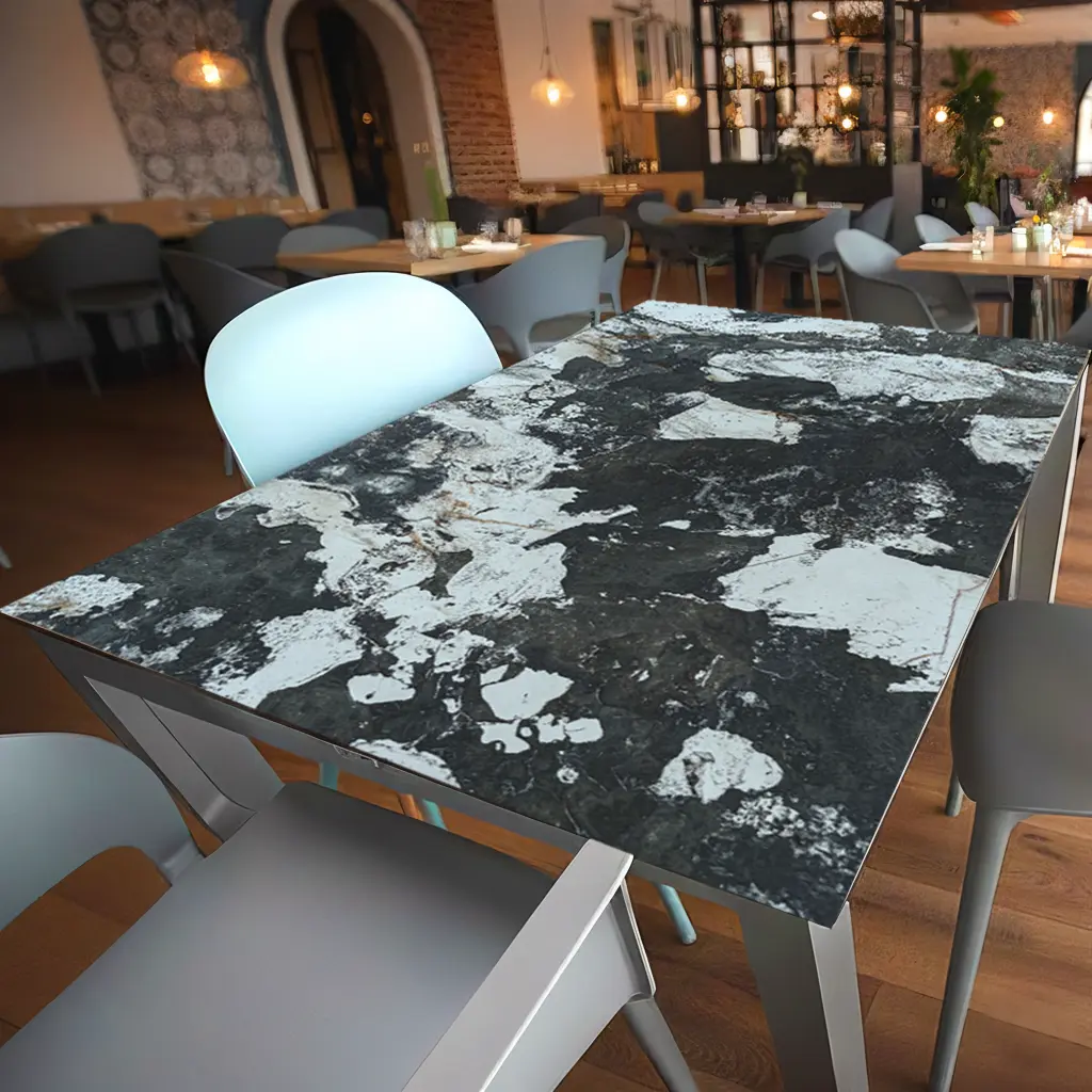 Die ausbalancierte Marble‑Optik setzt moderne Akzente in Küchen, Offices und Hotellerie, ohne Pflegeaufwand zu erhöhen. Die robuste HPL‑Oberfläche überzeugt durch Beständigkeit gegen Feuchtigkeit und Hitze, einfache Reinigung und hohe Schlag‑ sowie Kratzfestigkeit – perfekt für Hotel‑ und Lobbybereiche, Bildungsinstitutionen, Office‑Partitionen und andere stark frequentierte Zonen.