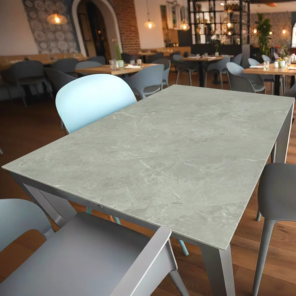 Die dezente, helle Marble‑Ästhetik veredelt Arbeitsplatten, Tischflächen, Office‑ und Wandpaneele sowie Schrankfronten mit zeitloser Ruhe. Die robuste HPL‑Oberfläche überzeugt durch Beständigkeit gegen Feuchtigkeit und Hitze, einfache Pflege und hohe Stoßresistenz – perfekt für Hotels, Lobbys, Restaurants, Bildungsbereiche und andere stark frequentierte Zonen.